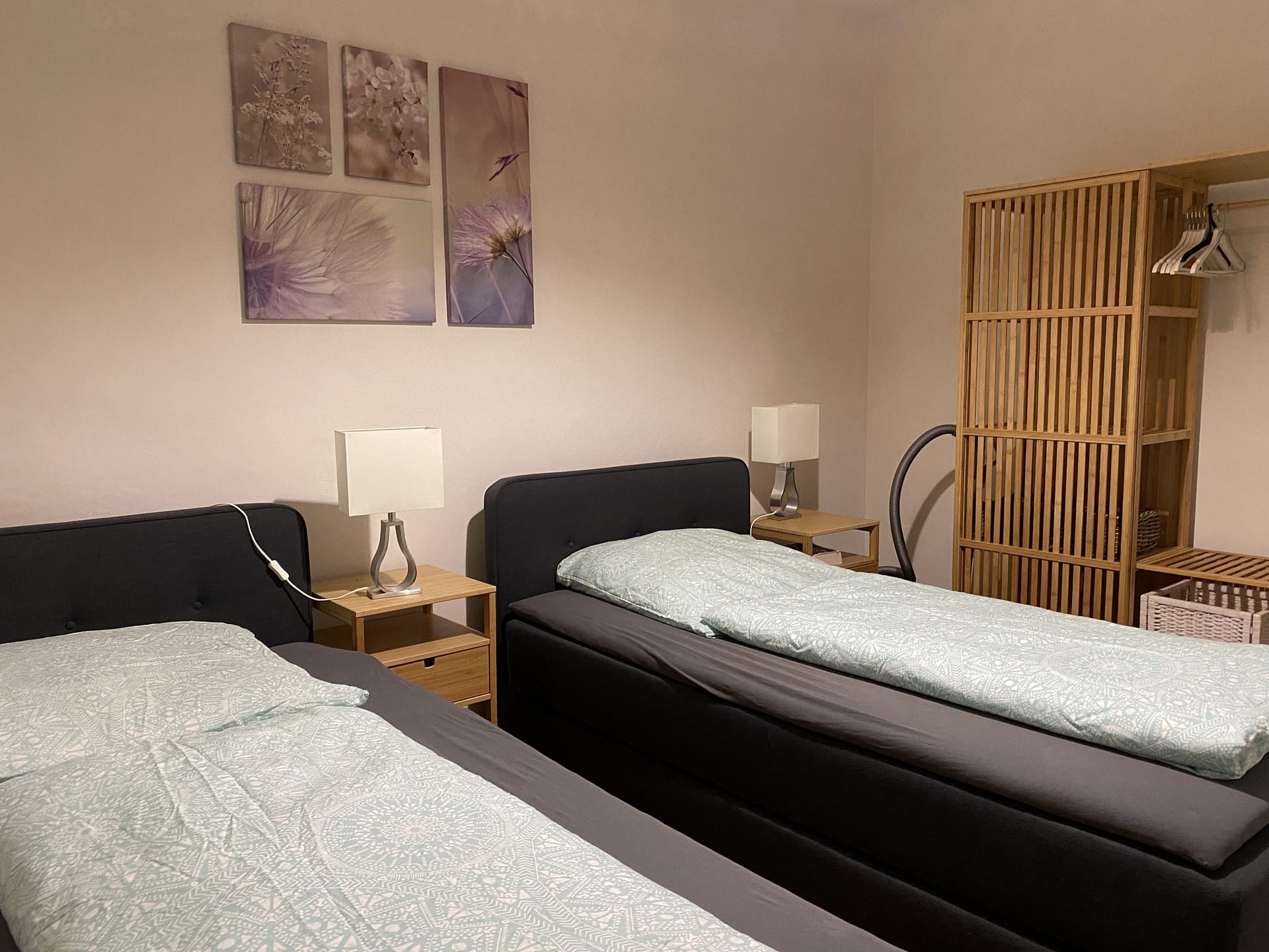 1 Boxspring 1,80×2,00m (Das Bett lässt sich auch zu Einzelbetten umbauen)